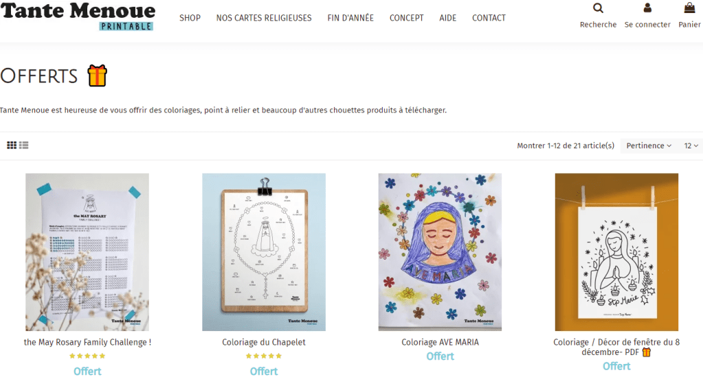 Des coloriages gratuits en ligne chez Tante Menoue : Le mois du Rosaire / le chapelet / Ave Maria